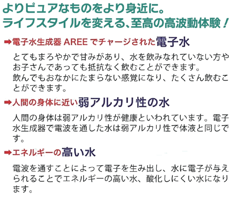 「あれ!? あれ!?」と奇跡のようなことがいっぱい起きるから、商品名が「AREE (アレー)」になった、電子水生成器「アレー」。